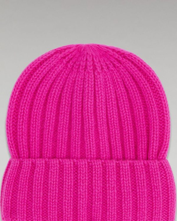 Bonnets En Cachemire | Unisexe FROM FUTURE Bonnet À Revers À Côtes Disco Pink