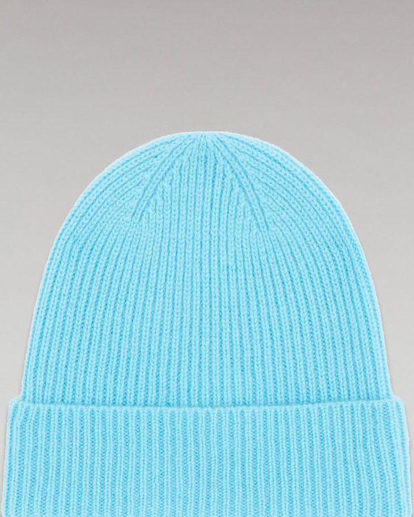 Bonnets En Cachemire | Unisexe FROM FUTURE Bonnet À Revers À Petites Côtes Acid Blue