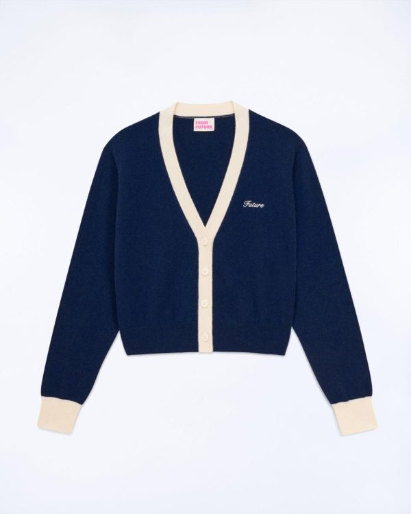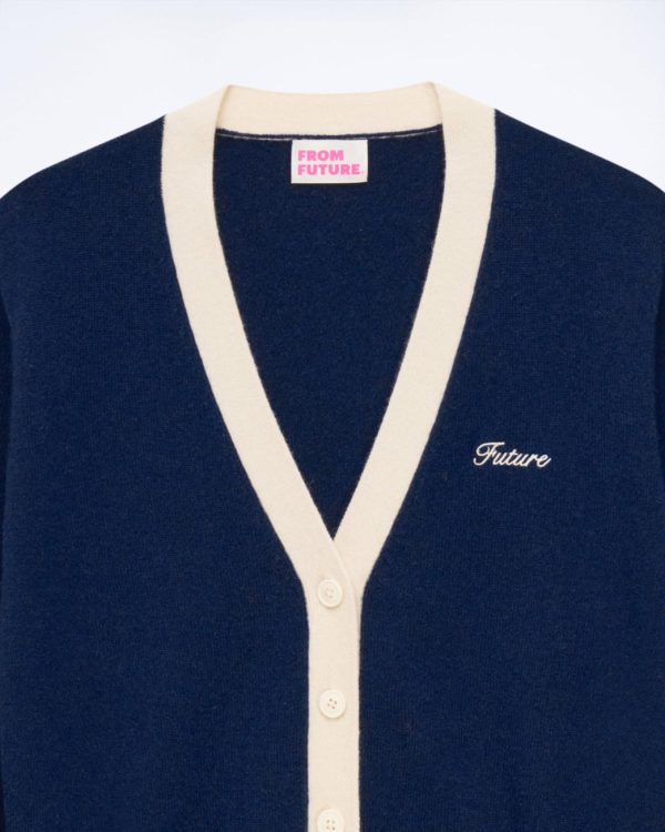 Cardigans | Femme FROM FUTURE Pull Cardigan Bicolore College Blue