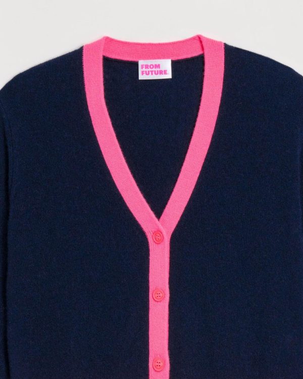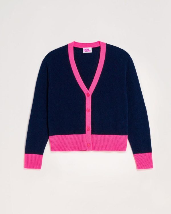 Cardigans | Femme FROM FUTURE Pull Cardigan Bicolore Léger Navy