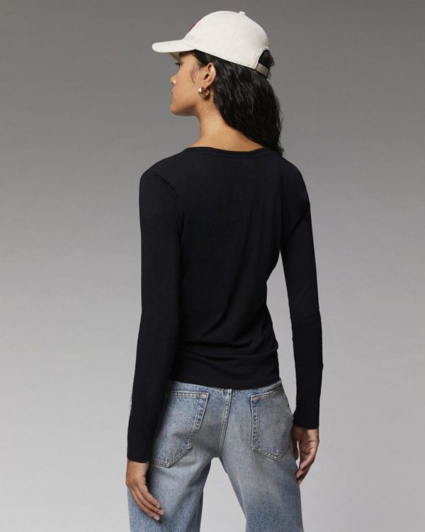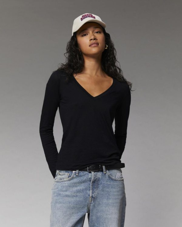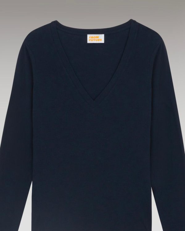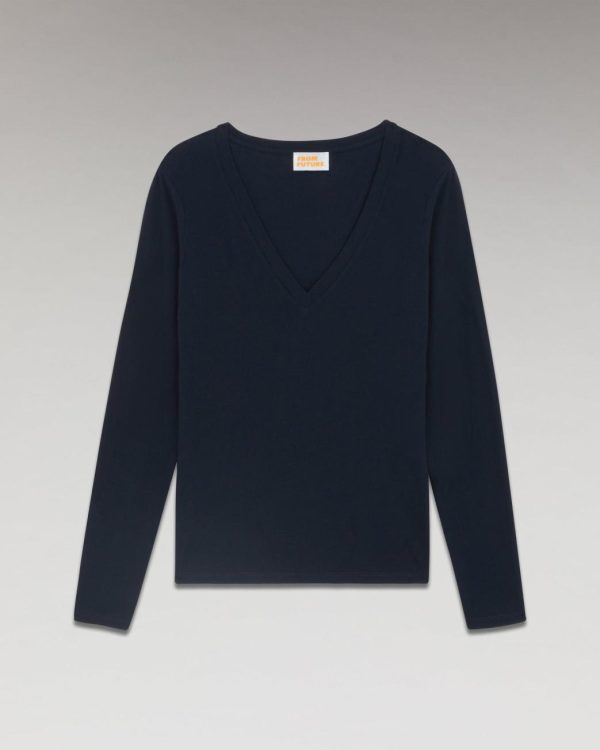 Avec ses lignes affirmées, ce t-shirt en coton s’impose comme un incontournable du vestiaire futuriste. Alliant confort et élégance, il dévoile des manches longues et un col en V. À porter seul ou en superposition, complétez votre look avec un pantalon de tailleur ou une jupe vaporeuse.