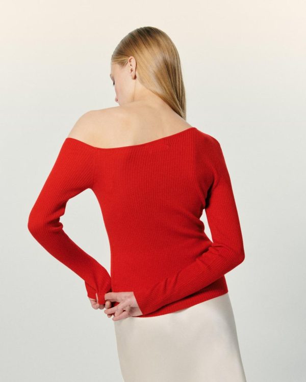 Coupe soignée et détails audacieux pour ce top court, côtelé et confectionné en laine mérinos. Muni de manches longues, il dévoile une épaule dénudée et un col asymétrique pour transcender votre silhouette futuriste. À porter à même la peau, il se mixe à un pantalon ample ou une jupe structurée.