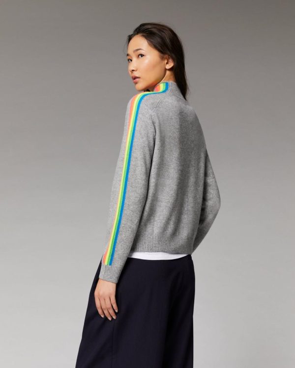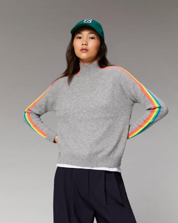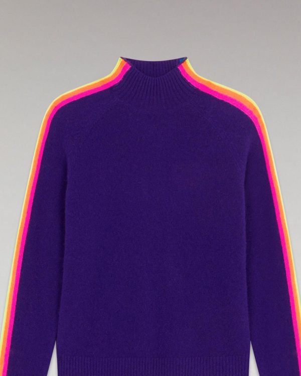 Cols Montants Cachemire | Femme FROM FUTURE Pull Col Montant Bandes Manches Multicolore Léger Winter Purple