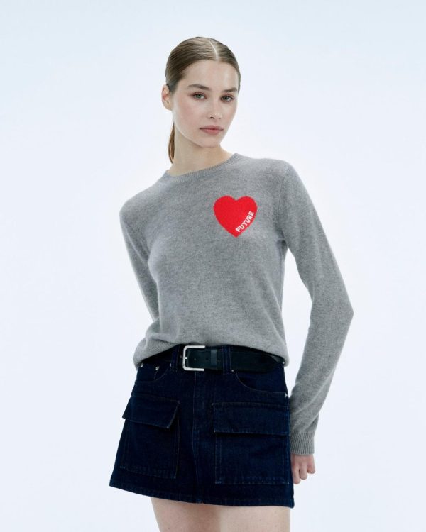 Confectionné en cachemire 2 fils, ce pull arbore un cœur brodé « FUTURE » sur la poitrine, le détail signature pour ponctuer votre allure cosmique. Muni d’un col rond, de manches longues et de bords côtelés, il s’adopte sans effort et s’associe aisément à un jean ample ou un jogging casual.