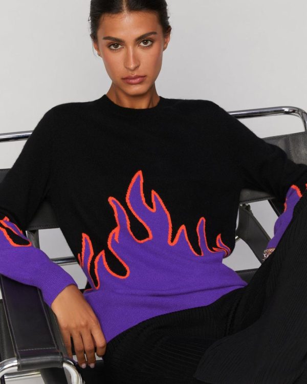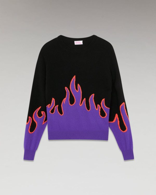 Empreint de caractère et d’audace, ce pull confectionné en cachemire 2 fils se twiste de flammes déclinées dans des couleurs vives. Muni d’un col rond, de manches longues et de bords côtélés, il donne instanténement de l’allure et vient embraser votre silhouette futuriste. Affirmez votre style en l’agrémentant d’un pantalon en maille flare et d’une paire d’escarpins.