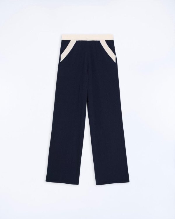 Embarquement immédiat vers un style empreint de douceur : ce pantalon de jogging large est confectionné en cachemire 2 fils et dévoile des bandes contrastées à la ceinture et aux poches.