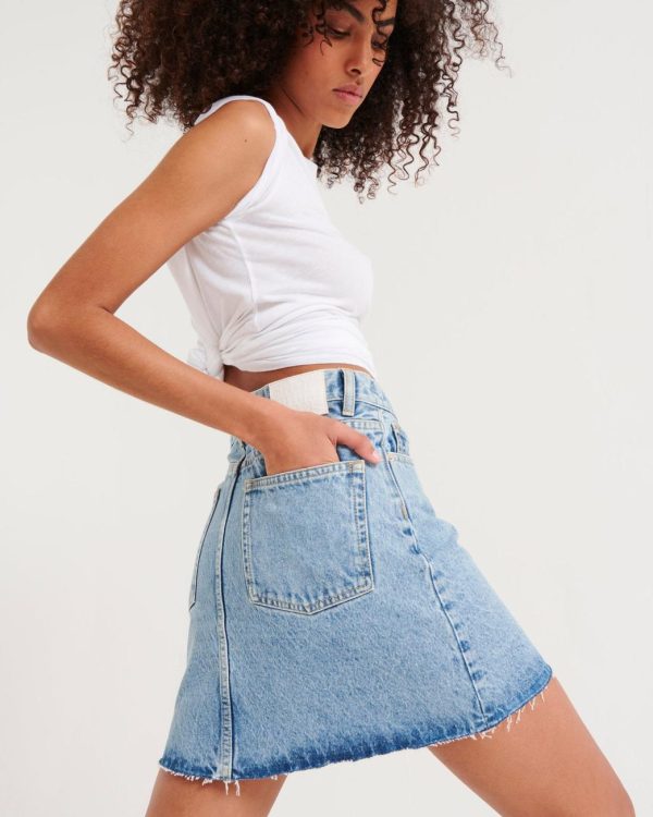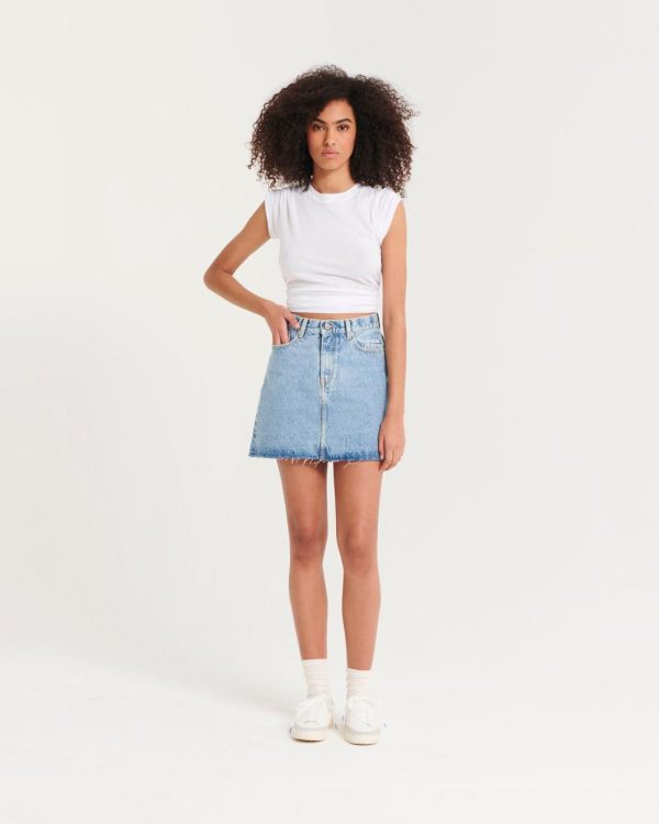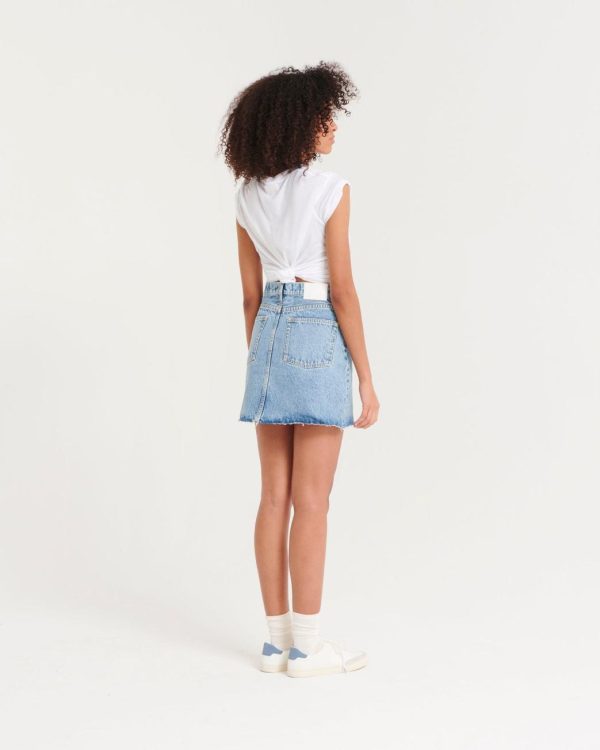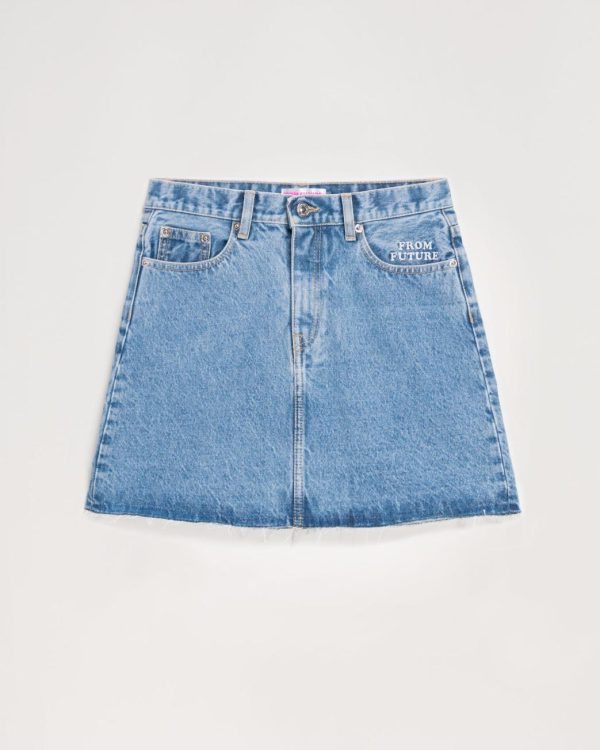 Rencontrez Jay : La mini-jupe trapèze. Détail brodé « From Future » semi-caché au niveau de la poche gauche. Jacron à l’arrière. Bas de jupe bord franc.