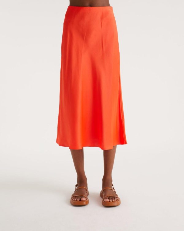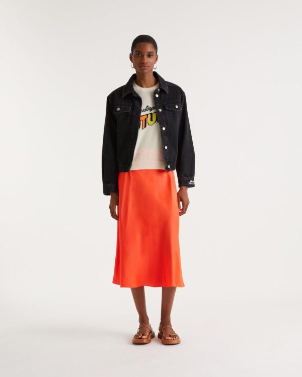 – Jupe mi-longue en satin de soie Femme
