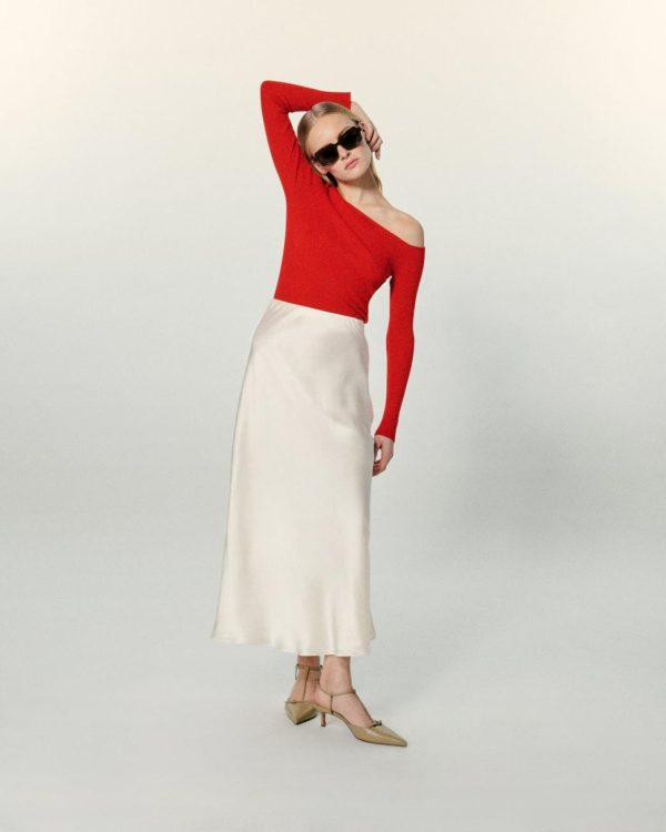 – Jupe mi-longue en satin de soie Femme