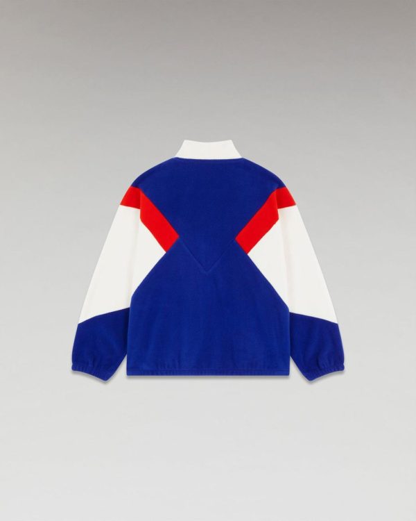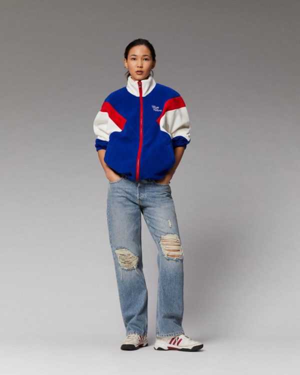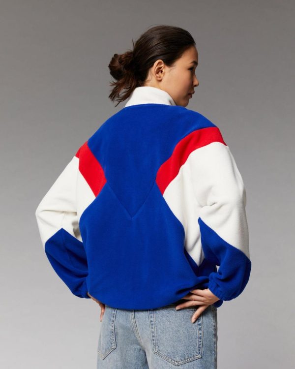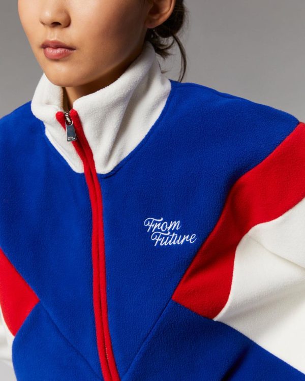 D’inspiration spatiale, cette veste polaire longue et oversize affiche des bandes tricolores contrastées et une broderie « From Future » sur la poitrine pour une allure cosmique qui transcende le temps. Munie d’un col montant, de manches longues et de poignets resserrés, il dévoile une fermeture zippée et deux poches. Élégant et confortable, il s’associe parfaitement à un jean casual ou un pantalon structuré.