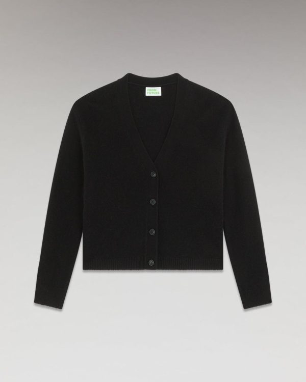 Cardigan à coupe courte. Boutons tons sur tons siglés et bouton de rappel. Le pull de mi-saison idéal à porter seul ou par dessus une jupe ou une robe en soie. Un bon basique du vestiaire FROM FUTURE, disponible dans 13 couleurs. Le plus léger de nos cachemires, le plus étudié aussi : 2 fils tricotés en déjaugé pour une maille aérienne et moelleuse, confortable quelque soit la saison.