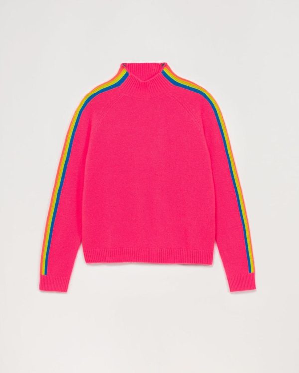 Pulls En Cachemire | Femme FROM FUTURE Pull Col Montant Bandes Manches Multicolore Léger Winter Fuschia