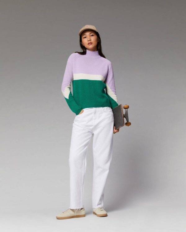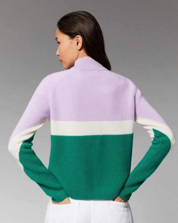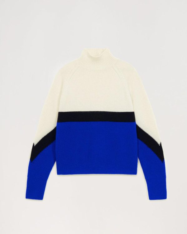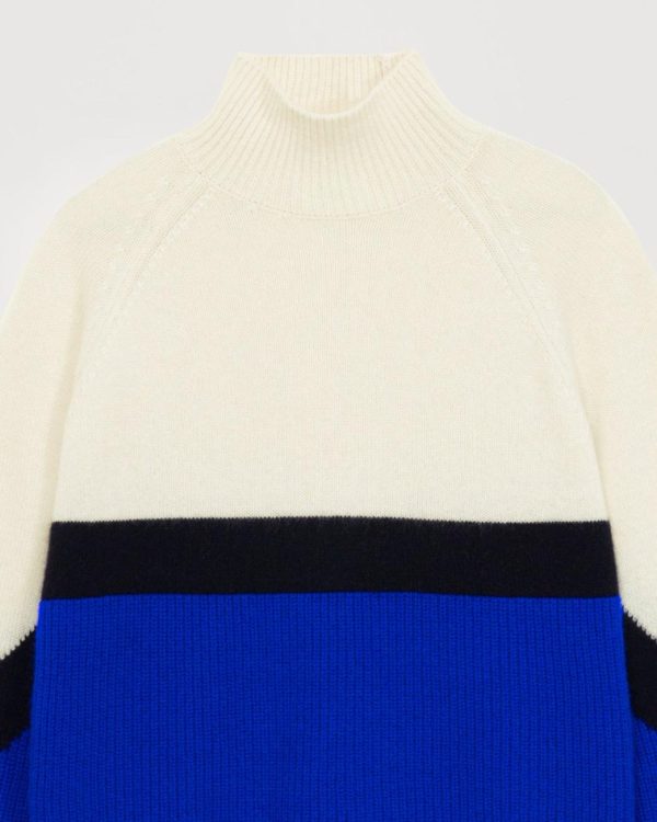 Et si on mettait un peu de couleurs dans votre hiver ? Pourquoi pas avec ce pull à col montant en cachemire à motifs color block ?