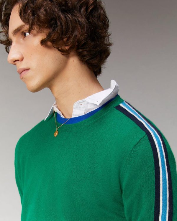 Confort et douceur pour ce pull en 100% cachemire muni d’un col rond et de bords côtelés. Ses bandes bicolores se révèlent le long des manches et confèrent une allure futuriste et moderne.
