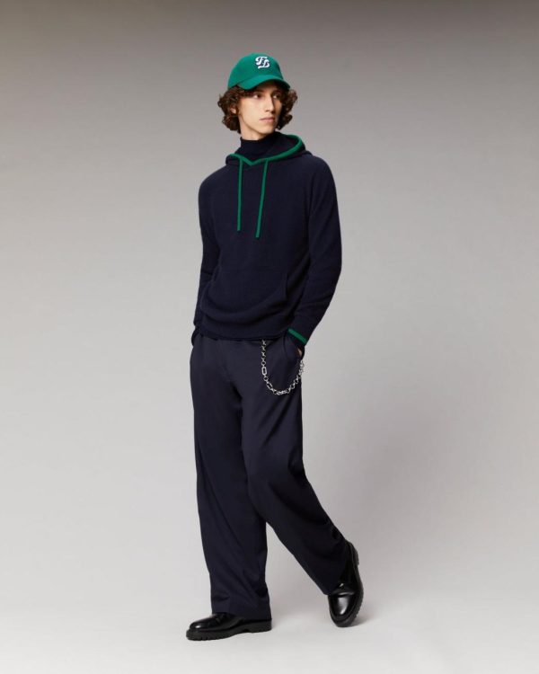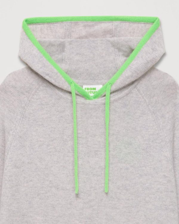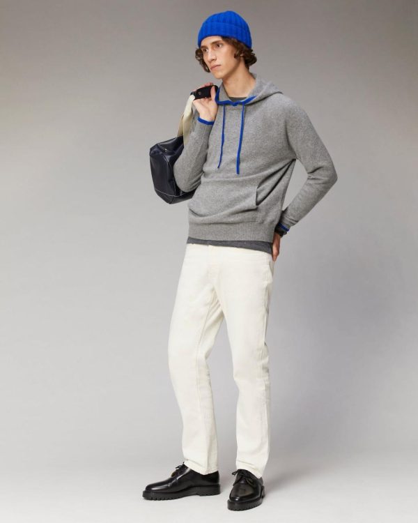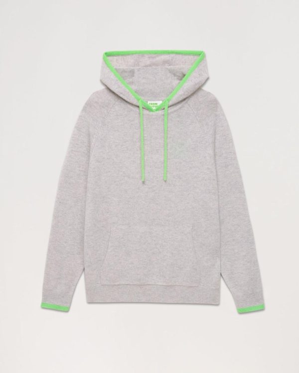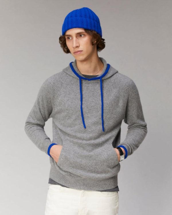 Pulls En Cachemire | Homme FROM FUTURE Pull Hoodie Liserets Contrastes Léger Gris Chiné Clair