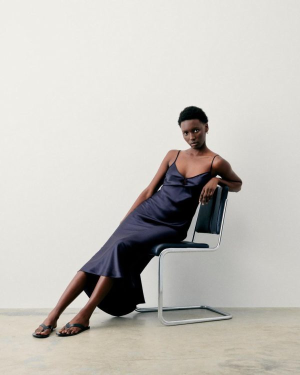 Confectionnée en satin de soie, cette robe longue trouvera une place de choix dans votre vestiaire futuriste. Munie de bretelles fines ajustables et d’un décolleté en V, elle dévoile une petite ouverture à l’avant et une jupe fluide au tombé évasé. Élégante et légère, mixez-la à une maille moelleuse ou une veste structurée.