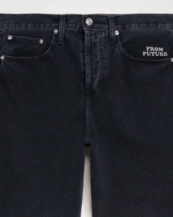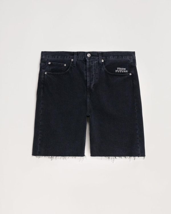 Rencontrez Jack, le short en jean uni. Regular fit. Détails : Broderie FROM FUTURE semi-cachée et jacron signé à l’arrière. Bas de jambes à bords francs.